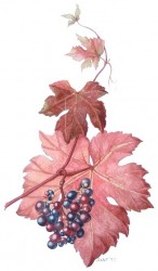 Frans ras. Kleine, compacte trossen en bessen, dieprood sap. Prachtige bordeaux-rode bladeren gedurende de gehele zomer. Matig sterke groeier. Als sierdruif, niet om zo te eten, eventueel voor wijn, rijp half oktober.