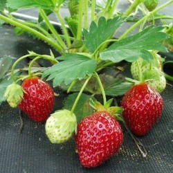 MINSTENS 1X PER JAAR VOLOP BESCHIKBAAR. (Puget Beauty x Senga Sengana). Een bijzonder lekkere, late aardbei met een stevig aroma. Geeft grotere vruchten dan de voorouder Senga Sengana. De kegelvormige vruchten zijn vrij donkerrood, stevig en sappig. Een van de hekkensluiters van het vollegronds-aardbeienseizoen.