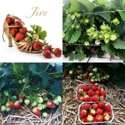 MINSTENS 1X PER JAAR VOLOP BESCHIKBAAR. (2012) Een goede selectie van Fresh Forward, geselecteerd door Bert Meulenbroek. Dit ras is ideaal voor de late teelt op zandige bodems. Jive vormt een vrij compact, donkergroen gewas met voldoende lange bloemtakken. Late rassen maken pas laat uitlopers. De vruchten zijn goed zichtbaar wat de oogstbaarheid vergemakkelijkt. Warmte deert de plant niet, mits voldoende water aanwezig is. De eerste vruchten van Jive zijn groot en langwerpig kegelvormig. Soms zijn ze wat afgeplat. De daaropvolgende vruchten zijn uniform van maat en behouden hun conische vorm, ze hebben een mooie rode kleur en goede glans. De smaak is goed en wordt er bij warmer weer alleen maar beter op. Voor de professionele teler zijn de goede houdbaarheid en bestendigheid tegen transport een duidelijke pré. De productie is groot: 30% meer dan bij de meeste moderne rassen. Jive is niet erg gevoelig voor witziekte (meeldauw).