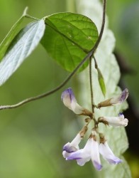 Een snelgroeiende kruip- of klimplant met de bijzondere eigenschappen van een echte tropische pinda! De laag ontstane bloemen richten zich na bevruchting naar de grond: net onder de grond groeit vanuit elke bloem een “nootje” van 1-2 cm groot, die een dun schilletje heeft. Na pellen kunnen ze rauw, gebrand of gebakken worden gegeten: een frisse nootsmaak met een tintje bonenaroma. De hoger bloeiende bloemen vormen peultjes met enkele echte zaden, die net als linzen kunnen worden gekookt. Het blad is driedelig en de lila bloemetjes groeien in trosjes. Omdat de plant vlinderbloemig is, wordt stikstof gebonden aan de worteltjes, die eventueel door buurplanten wordt gewaardeerd, een combinatie met stevig groeiende andere planten zoals maïs o.i.d. (let op voor overwoekering) is daarom heel nuttig. Het oogsten is een geduldig klusje! De plant is goed winterhard in ons klimaat (zone 7), houdt van schaduw (bosplant) en humeuze grond.