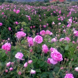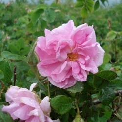Het parfum van deze beroemde geurroos uit het Midden-Oosten wordt zeer gewaardeerd, de complexe geur wordt veroorzaakt door maar liefst 275 stoffen in de bloem! De x damascena is een (spontane?) kruising tussen Rosa gallica en Rosa moschata (met ook nog wat DNA uit de Rosa fedtschenkoana) en was in de Romeinse tijd al bekend. In de 13e eeuw zijn de planten door kruisvaarders meegenomen naar Noord-Europa. Door de latere bloei volgt dit soort de Rosa gallica op. Pluk de bloemblaadjes, laat ze drogen en ziehier: voor maandenlang rozengeur (en maneschijn?) in uw huis. Van verse rozenblaadjes geef je thee een heerlijke zoete afdronk. Samen met wat honing geeft dit extra heling en verzachting bij keelpijn. In de tuin zal deze roos nauwelijks last hebben van ziekten, mits je ze goed zonnig en het liefst op een verhoogd plantenbed plaatst. De hoogte is 60-90 cm, bloeitijd juli-september.