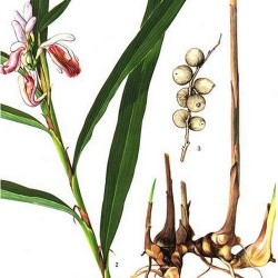 Dit familielid van de gember is een pittiger smaakmaker: van de (wel of niet gedroogde) wortel worden stukjes gesneden voor een smaakmix van gember, peper en kruidnagel. De Maleisische- en Indonesische keuken onderscheidt zich door het gebruik van dit specerij. Het geurige en aromatische blad is ook eetbaar, de vruchten dienen als vervanger voor Kardemom. Medicinaal helpt de wortel bij de spijsvertering. In Europa wordt galantwortel verwerkt in likeuren en bitters. Met de zijderoute kwam deze Europa al binnen. Het lange, lancetvormige blad (1-1,5 m hoog) wordt in de zomer gesierd met fantastische bloemtrossen: wit aan de buitenkant, van binnen geel met rode aders, een orchidee is er niets bij... De planten kunnen het beste in de herfst al naar binnen en vanaf mei naar buiten.