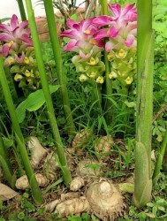 Deze Zuid-Aziatische Kurkuma groeit uit tot een fraaie plant van ongeveer 1 m hoog met mooie bloemen in gele, witte en roze kleur, die ook nog eens heerlijk geuren! De dikke wortels zijn wit van binnen (vandaar de naam) en mengen de smaak van gember en mango met een stevige nasmaak. De wortels worden zowel vers als tot poeder vermalen gegeten, vooral als smaakmaker in gerechten (bijvoorbeeld als ingrediënt in curry) of thee. In Azië zijn meerdere medicinale toepassingen bekend.