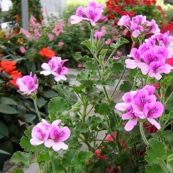 Geurgeraniums zijn een welkome aanvulling in de “beleeftuin”. Even met je handen er doorheen, even snuffelen... In een flinke pot kunnen ze ook achter de vensterbank of in de slaapkamer: ook weer met je handen er doorheen en de muggen komen niet zo snel binnen!