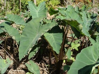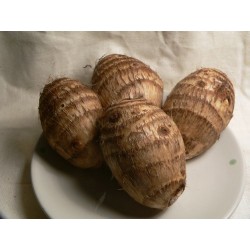 Een prachtige bladplant met enorme bladeren (als olifantsoren) en met een adembenemende blauw-groene waslaag. Tot bloei komt deze aronskelkachtige niet in ons klimaat. Zet ze vochtig tot nat en 's winters vorstvrij en droog. De Taroknollen worden al sinds mensenheugenis in de tropen gegeten, in Azië en Afrika is de teelt enorm populair, ze bevatten 25% zetmeel en zijn vrijwel ongevoelig voor ziekten. Ze worden gekookt, geroosterd, gebakken en gefrituurd. In Afrika worden ze in een pasta (“fufu”) verwerkt. Het blad is na koken ook eetbaar (lekker om vlees of vis in te rollen). Hoogte 1m.