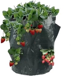 Deze groeizak helpt je daarbij... De zak heeft een diameter van 30 cm, is versterkt met baleinen en is totaal 60 cm hoog. Voorzien van draaghengels. De zak is voorzien van 8 uitstekende zakjes waar de aardbeiplantjes uit groeien. Je bouwt het beste de zak van onder af op, de plantjes van binnen naar buiten steken, zodat je niet de kluit erin hoeft te proppen... Leveringsmaandenhet gehele jaar