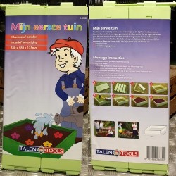 Voor kinderen is het zelf kweken van groenten en/of bloemen een leuk avontuur. Om overzichtelijk te beginnen is dit verhoogde plantenbedje in vrolijk groene kleur een goed begin. De panelen maken samen een tuintje van 58x58 cm em 13.5 cm hoog. Zet dit tuintje niet op de tegels, maar gewoon in een bestaande tuin en vul het bedje met tuinaarde of potgrond. Dit is helemaal het eigen domein van elk kind dat groene vingers mag krijgen…