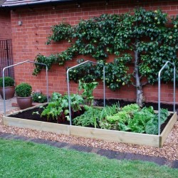 Gegalvaniseerde tentkoepel van 1 staander met een puntmodel bovenin. Het frame past exact in de uitsparingen van de koppelstukken voor de uitbreiding van het Houten Plantenbed (845225) en dient als steun voor netten, insectendoek, transparant folie e.d. Frames zijn onderling uitwisselbaar. Deze koepel is de enkele versie van de 845230, welke een set van 2 is.