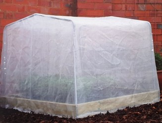 Heb je een verhoogd plantenbed met een zelfgemaakt of gekocht frame (845235)? Dit net valt als een tent eroverheen en beschermt tegen te fel zonlicht, te harde regen en vele insecten. Afmeting 115x115x100cm (lxbxh)