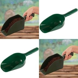 Schepjes zijn vaak niet zo handig bij het opscheppen van aarde. Dit model met zijn hoge randen is daar speciaal voor ontwikkeld en niet om plantgaten te maken. Groen kunststof met extra nylon voor lange houdbaarheid. We leveren de hoekige of de ronde vorm.
