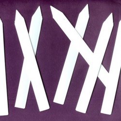 Deze kunststof steeketiketten hebben een aangepunt gedeelte om ze in de grond te steken, langs de randen zijn ze verstevigd met een profieltje. Helderwit, 20 cm lang, 17 mm breed.