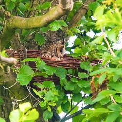 Deze ronde mand van natuurlijke gevlochten (wilgen)tenen vormt een veilige nestplek voor ransuilen, boom- en torenvalken. Geef de mand een stevige plaats in een boom, op minimaal 4 m hoogte, dicht bij de stam (tussen een vertakking) en maak ze vast aan de boom met behulp van touw of snelsluiters. De beste locatie is aan de rand van een bos, in een park of een grote tuin. Zorg ervoor dat de vogels een vrije aanvliegroute hebben. Vul de mand voor de helft met droge bladeren en bosgrond, het geliefde nestmateriaal van uilen.