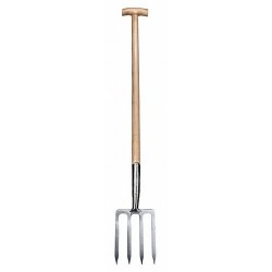 Prachtige en sterke RVS vork, waarmee je kan spitten en rooien zonder schade aan wortels. Spitten wordt gedaan om de structuur van de bodem te verbeteren, gewasresten en mest onder te werken en onkruid te bestrijden. Tevens heeft spitten als voordeel boven frezen