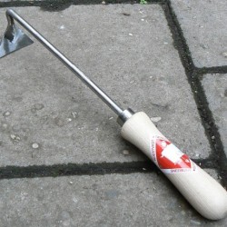 Speciaal voor ons gemaakt, het schrepeltje zoals ze vroeger waren: kort, smal, dus handig! Ideaal om precies mee te werken en om bv worteltjes mee uit te dunnen. Bladbreedte 55 mm, stiftlengte 22 cm, totale lengte 35 cm. Degelijk fabrikaat van Sneeboer, metalen delen van roestvrij staal, waar nodig gesmeed.