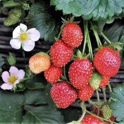 De mooie en tamelijk groeikrachtige, donkergroenbladige planten geven overvloedig appelbloesem kleurige bloemen en aromatisch fruit gedurende de gehele zomer, goed doordragend dus. De grote bloemen op lange bloemstelen met een aantrekkelijke appelbloesem bloemkleur maken 'Roman' en 'Gasana' tot een sierlijke potplant, waar je ook nog lekker van kan smullen! ZaaimethodeZaai is mogelijk vanaf begin januari tot aan eind maart voor vruchten hetzelfde jaar en van april-juli voor oogst het jaar erna; zaai bij temperatuur 22°C (20-25̊C). Zaaimedium: cocopeat met zilverzand, het bovenste laagje zeven met de keukenzeef om extra fijne grond te krijgen. Na het verspreiden van de fijne zaden, deze licht aandrukken en een zeer dun laagje voornoemde zaaigrond over het zaaisel zeven. Vochtig houden d.m.v. water nevelen, niet te nat en niet in de zon zetten. Als na 4 weken nog geen kieming te zien is, mag het zaaibakje 1 dag in de koelkast, vervolgens weer op 22̊C. Verspeen de zaailingen wanneer het eerste echte blad verschenen is (meestal na 4-6 weken). Hard de planten voldoende af voordat je ze in tuin of bakken plant. Regelmatige bemesting is noodzakelijk maar overbemesting is schadelijk! Leveringsmaandenhet gehele jaar