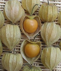 Een bijzonder eetbaar familielid van de bekende oranje lampionplant. De plant wordt ruim 1m hoog, na de bloei ontstaan de lampionnetjes met de aromatische zoete, oranjegele besjes. De smaak heeft een mix van ananas, aardbei en tomaat met een klein bittertje. Oogstbaar als de omhulsels vergelen, daarna vrij lang houdbaar.