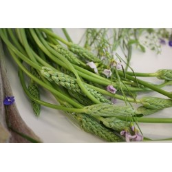 Na enkele jaren geduldige teelt kunnen we sinds 2012 gaan oogsten van deze onbekende en exclusieve groentesoort. De bloemstengels worden rauw in de knop geoogst en klaargemaakt als een heerlijke asperge met een stevige, “wilde” smaak. Maak een productieveldje op een zonnige tot halfbeschaduwde plek, humus- en kalkrijk en oogst ze jarenlang: de planten zijn zeer winterhard. Ze hebben op zijn minst graag wat onderbegroeiing, gras is ook al goed. Vroeger groeide deze telg van de vogelmelkfamilie uitbundig rond de stad Bath in Engeland, maar daar heeft men te gretig geoogst... In de berggebieden van Frankrijk en Spanje (Pyreneeën) tref je ze nog aan en worden aldaar door de bevolking geoogst en op de markt gebracht. De Fransman noemt deze verrukkelijke groente ook wel Asperge des Bois omdat ze in lichte bossen het meest met rust gelaten worden en dus daar nog voorkomen. Als je eens wat bloemen laat doorgroeien, geniet dan van bloemstengel van 40-100 cm hoog, aan het eind gesierd met bloemtrossen van 30-50 cm groot. De stervormige bloemetjes (mei-juli) zijn crèmewit en blijven na de bloei geopend om geleidelijk af te rijpen in fraaie doosvruchten.