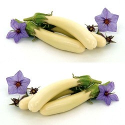 De planten van deze fraaie, slanke, witte aubergine blijft tamelijk compact. Hierdoor zal de oogst redelijk vroeg zijn en ook buiten lukken. Probeer ze ook eens in een grote pot te telen! Het beste oogststadium is als de vruchten 8-10 cm lang en 2-3 cm dik zijn.