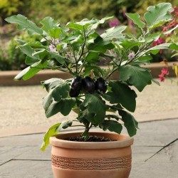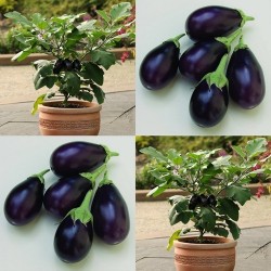 Compacte planten voor potten of vollegrond, een topper voor de buitenteelt! Elke plant kan meer dan 20 ovaalronde, eivormige, donkerpaarse vruchten dragen van ongeveer 10 cm lang, gewicht 50-80 gram. Als de eerst vruchtzettingen worden weggenomen stimuleert dat meer bloei en vruchten. Ook leuk voor in een pot!