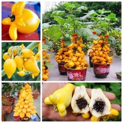 Een boeiende, onbekende telg van de auberginefamilie. De stekelige, sierlijke planten geven na de sierlijke blauwe bloei de grappige licht- tot donkergele vruchten in de vorm van een koeienuier! De takken met vruchten zijn zeer populair bij bloemisten, in Azië maakt men complete kunstwerken met deze vruchten! In de homeopathie wordt deze (verder giftige) plant gebruikt, ook wordt geëxperimenteerd met extracten ter bestrijding van insecten. Houdt u het voorlopig maar bij de toepassing als “rare” siervrucht....!