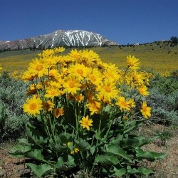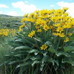 017900 BALSEMWORTELook wel genoemd: BALSAMWORTEL (Engels: Arrowleaf Balsamroot, Oregon Sunflower, Okanagan Sunflower)(Balsamorhiza sagittata, synoniem: Bupthalmium sagitattum) |