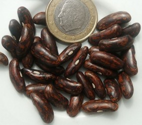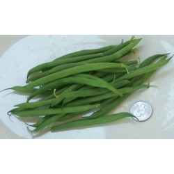 Ras uit Frankrijk, dat waarschijnlijk in 1892 is ontstaan. Een prachtige oogst van fijne, groene bonen, die zich goed lenen voor extra vroege oogst (naaldbonen) maar ook bij later plukken goed mals blijven. Houd dan wel rekening met draad, even iets meer werk om schoon te maken dus. Overigens klinkt vaak de (nostalgische) verzuchting, dat de ouderwetse bonen met draad de lekkerste waren! De bruine zaden zijn opmerkelijk en typerend voor naaldboonrassen. De peulen zijn vrij lang.