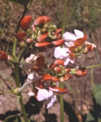 Wat kan de groentetuin toch af en toe mooi zijn..... U vond die rode Pronkers vast al heel fraai, ziehier een herintroductie van een oud ras uit Engeland: een fantastisch, 2-kleurig bloeiende  soort: in de knop rood, bloeit met witte “lipjes” en rode “vlaggetjes”. Als toegift een enorme oogst!