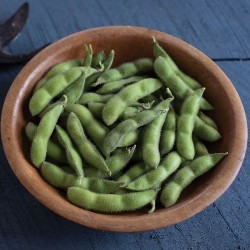 Wie kent de naam niet van deze zeer voedzame en eiwitrijke peulvrucht!? Leuk om eens te telen: de zaden kunnen rijp en onrijp worden gegeten. Dit ras is uitgebreid in Noord-Europa getest en wordt rijp in ons klimaat. Heerlijk zijn de vers gedopte boontjes, in Japan “Edamame” genoemd.
