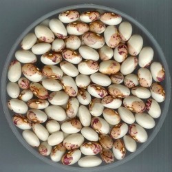 Dit zeldzame, bijzonder gekleurde boontje kent zijn oorsprong in Zuid-Oost-Europa (onze vindplaats: Rodopen in Bulgarije). Als jonge boon is het een lekkere sperzieboon, uitgerijpt oogst je de prachtige boontjes: wit met een moccakleurig veld en daarin kersrode streepjes… Daarom hebben wij deze naam eraan gegeven. Alleen de kleur al brengt je op culinaire ideëen! Een vrij laat rijpende stokboon: klimmend dus. Uiteindelijk komt deze boon uit Amerika, de gelijkenis met de eveneens late ‘Papa de Rola’ of ‘Dove's Breast’ is treffend. ‘Indian Shield Figure’ of ‘Hidatsa Shield Figure’ is iets afwijkend van kleur en w.s. vroeger oogstbaar.