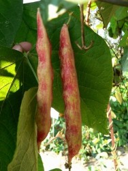 Deze boon wordt (zeer jong) als gehele peul, maar meestal gedopt gegeten. De peulvorm is breed en kort. De kleur is opvallend roodbruin gevlekt, in rijp stadium geel met felrode vlekken, populair bij bloemisten! De bonen zijn crèmegeel met felrode tekening. Populair in Zuid-Europa en steeds bekender in onze keuken.