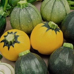 Dit is een mengsel van de beste bolronde courgettes! De kleuren lichtgroen, donkergroen en geel komen in de mix voor. Ronde courgettes hebben een fijne smaak, ze zijn extra mals als je ze zeer jong oogst.