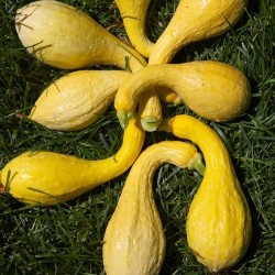 Voor een landras is dit een opmerkelijk vroege, rijkdragende courgette. De iets taps toelopende, vruchten zijn lichtgeel van kleur en zeer smakelijk. De planten zijn middelgroot en vrij open van groei: gemakkelijk oogstbaar.
