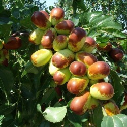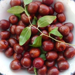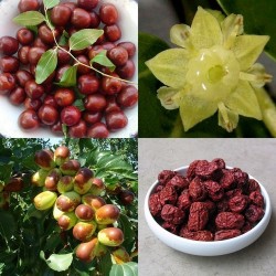Aan de sierlijk bloeiende struik tot kleine boom groeien roodbruine vruchten, 2 cm lanh, ovaal van vorm. In China is deze boom zeer geliefd! De vruchten worden gedroogd als dadels (heerlijk zoet), vers gegeten, gekookt voor pudding, cake of jam… Het poeder van de gedroogde vruchten is de smaakmaker van "Kochujang" een hete sojasaus. Veel gezondmakende en medicinale toepassingen: energiegevend, spieropbouw, leverstimulatie, weerstand, etc. De plant is geheel winterhard in ons land.