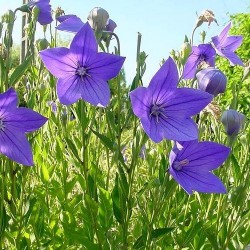 In de Chinese geneeskunde wordt Platycodon grandiflorus veel aangewend, zie hiervoor de vele informatie op internet. Wat betreft de sierwaarde: Het is waarlijk een edelsteen onder de tuinbloeiers met opvallende stervormige, hemelsblauwe klokbloemen, die in de knop eerst opzwellen tot schijnbare ballonnetjes. Ze bloeien van juli tot oktober toe ! De plant groeit redelijk compact: 40-50 cm en wordt ook in bakken aangeplant, zelfs als kamerplantje (in de zomer) of als snijbloem is het plantje populair! Dek de planten in de winter toe met vruchtbare compost, dan groeien ze vruchtbaar, groot en zullen snel kunnen worden geoogst! ZaaimethodeZaaien: januari-april binnen voorzaaien en in potjes verspenen. Voor late bloei of groei en bloei in het jaar erna kan ook in mei-augustus buiten in potten worden gezaaid. Leveringsmaandenhet gehele jaar Gelijke productenDit product kent meer toepassingen en komt daarom in verschillende groepen van onze website voor. Dit product is ook te vinden als