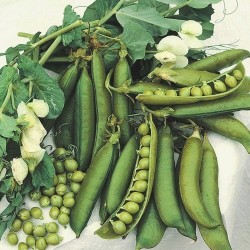 Kreukzadige erwten zijn het zoetst, deze Engelse smaaktopper wordt 75-100 cm hoog en heeft dus enige steun nodig. De lange peulen dragen 9-11 erwten, er komt een grote opbrengst van dit middenvroege en tamelijk ziekteresistent ras (oogst na 100 dagen). Tip: zaai dit peulgewas om en om met huttentut (390900) voor een natuurlijke steun.