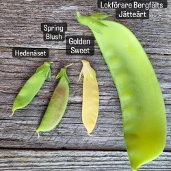 Een stukje geschiedenis: rond 1940 kregen Alida en Efraim Andersson zaden van deze reuzenerwt van een locomotiefmachinist, Birger Wilhelm Bergfält, in Ludvika. Toen Alida en Efraim rond 1975 verhuisden, wilden ze de peulen graag laten voortbestaan en gaven hem aan tuinman Olle Ridelius in Vassbo. Hij gaf het op zijn beurt aan de Sesame-vereniging. Hoe de machinist, die leefde tussen 1890 en 1945, aan de zaden kwam, is moeilijk te zeggen, maar er bestaan al sinds de 19e eeuw verschillende soorten reuzensuikererwten. Kijk ook op dit YouTube filmpje: www.youtube.com ZaaimethodeZaaien: onder glas jan-febr, buiten van maart-mei. Tweede zaai half juni (lukt de meeste jaren). In de rij uitzaaien op 5-10 cm. Plukken als de scheden nog jong en dun zijn. Leveringsmaandenhet gehele jaar