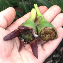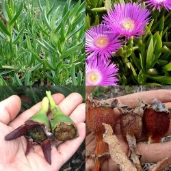 De hottentotvijg is een plant uit de ijskruidfamilie (Aizoaceae). De plant is ingevoerd vanuit Zuid-Afrika en is nu in veel Europese landen te vinden, vooral aan de kust. Verschillende verwante soorten komen ook in Europese kustgebieden voor. Het is een kruipende plant die zich flink kan uitspreiden. Zo worden kussens gevormd van 25-30 cm hoog. Ze komen voor op rotsen, kliffen en zandgrond en voorkomen erosie! Het 10 cm lange blad is heldergroen, succulent en driekantig. De fraaie roze (soms gele) bloemen rijpen af tot vlezige doosvruchtjes, die (mits geheel rijp) een lekkernij zijn: spannend slijmerig (als een oester) en zoetzuur. Je kan de vruchtjes ook drogen, meer info vind je hier: www.greenidiom.com Medicinaal wordt de plant aangewend tegen bacterieziekten en (wellicht) preventief tegen kanker. ZaaimethodeZaaien: jaarrond, gebruik cocopeat met zilverzand en zeef de bovenlaag met de keukenzeef zodat een extra fijn laagje ontstaat. Verdeel hier de zeer fijne zaadjes over en druk deze aan. Vochtig nevelen met lauw water en warm laten ontkiemen. Na opkomst zeer licht zetten. Leveringsmaandenhet gehele jaar