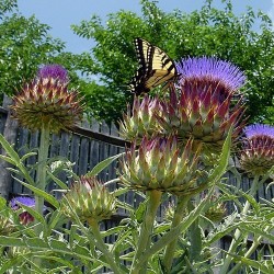 In Nederland is de nerf meestal malser dan in Italiƫ en de kooktijd dus aanmerkelijk minder. De bereiding is dan als volgt: de nerf scheiden van het bladmoes. Eventuele geribbelde zijkant en het buitenste velletje verwijderen. Vervolgens in stukjes snijden van ongeveer 1 cm. Zachtjes koken tot ze gaar zijn, dat kan al in 25 minuten. Heerlijk met een kaassausje! Over kaas gesproken: wist je dat de bloemen van de kardoen als alternatief stremsel voor kaas wordt gebruikt? In Portugal heb ik er een heerlijk kaasje van gegeten! ZaaimethodeZaaien: maart-mei op een warm plekje voorzaaien en verspenen in potjes. Buiten uitplanten zodra de ergste kou voorbij is. Kardoen kan onze winters overleven mits in niet te natte grond. Leveringsmaandenhet gehele jaar