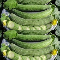 Meloenkomkommer (Flexuosus groep) Langwerpige, op komkommers lijkende vruchten met een stevige, frisse, maar wel meloenzoete smaakervaring. Wij hebben ze vanwege de vorm bij de komkommers ingedeeld. Bij eerste aanblik denk je met een komkommer van doen te hebben, maar botanisch gezien is dit een meloen! De smaak bewijst dat ook wel: de frisheid van komkommers, maar het zoete tintje van een meloen. De lichtgroene tot bijna witte vruchten hebben decoratieve ribben in de vruchtlengte, die overigens in de kas wel 100 cm kan bereiken! In elk stadium eetbaar, maar rijp het zoetst.