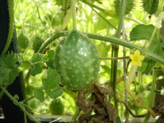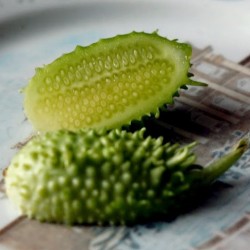 'Concombre des Antilles' Een heerlijke (en gezonde!) snack tussendoor. Afkomstig uit Afrika, komt dit vruchtje in de 17e eeuw naar Jamaica en van daaruit vindt het zijn weg over Noord en Zuid Amerika. De jonge vruchtjes zijn heerlijk fris snoepgoed en wordt al eeuwenlang gebruikt als 'blusmiddel' na een hapje peper. De planten geven een enorme oogst. Rijpe vruchtjes zijn 5 cm, rond tot ovaal, vol zachte stekels. In dit stadium bijzonder sierlijk, in Braziliƫ zijn rijpe vruchtjes een onderdeel van de maxixada-soep.