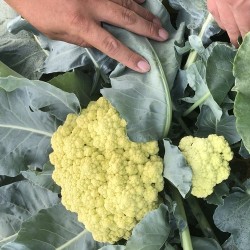Bloemkoli verlangt een voedzame, goed bewerkte en vochthoudende grond. Uitplanten op 50 cm. Het smakelijke van Broccoli en de vastheid en langere oogsttijd van bloemkool zijn nu verenigd in deze bijzondere groente: een kruising tussen die twee! Lichtgroen van kleur, ongeveer zo groot als een bloemkool.
