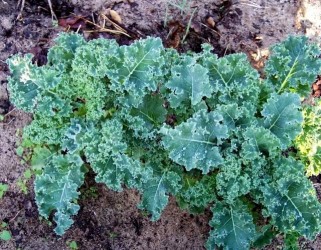 Wat een kleur!! Diepgroen met in de herfst een blauwgroene glans, sterk gekrulde bladeren. Deze eetbare decoratie staat mooi in de tuin en is geoogst geschikt voor decoratieve creaties in bloemwerk, pompoenshows etc.