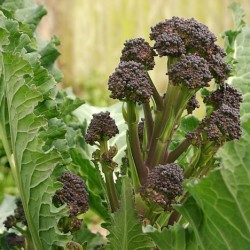 Dit is de originele broccoli, zoals deze al eeuwen geteeld wordt! Waarschijnlijk is deze in de Romeinse tijd binnen Engeland gekomen en is sindsdien vooral langs de zuidkust zeer populair. De plant overwintert en geeft het 2e jaar (in februari tot april ) de eerste oogst van malse bloemstengels (zacht als asperge) met in de top een overvloed aan paarse knoppen. Je kan ze diep in de knop al oogsten, een beetje rijper mag ook. De plant kan jarenlang mee, af en snoeien zorgt voor verjonging, extra beschermen als er een strenge vorst dreigtā¦