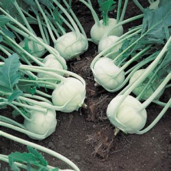 Tip: Eet ze jong, eet ze klein! Ze kunnen op kleine plekjes of in potten groeien. Dit ras is in 7-9 weken oogstbaar. Doorgegroeide knollen blijven overigens ook lang mals. Geef koolrabi wat grondbedekking in de vorm van mulch om te grote verschillen in grondvocht te voorkomen.
