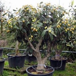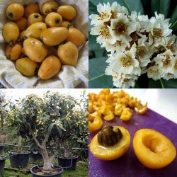 Deze tamelijk onbekende vrucht heeft zeker potentie om meer onder de aandacht te komen. De planten behoren tot de rozenfamilie en vormen een groenblijvende struik met donkergroene, behaarde bladeren. Het gaat natuurlijk om de eivormige, oranje vruchten met zeer sappig, aromatisch, zoetzuur vruchtvlees, wat enigszins doet denken aan abrikoos, perzik en mango! De vrucht bevat 1-10 afgeplatte, bruine zaden, kunnen uit de hand gegeten worden of worden verwerkt tot fruitsalades, vruchtensappen, compote, consumptie-ijs en jam. In China en Taiwan worden de vruchten ingeblikt. De Loquat kan ook in het Nederlandse en Belgische gematigde zeeklimaat overleven, voor bloei moeten ze ‘s winters opgepot de kas in. De vrucht wordt hier op de markt aangeboden, maar vaak onder de foutieve benaming mispel, wat de vrucht is van Mespilus germanicus, een verwante soort. De plant komt van nature voor in het zuidoosten van China en in Japan waar hij al meer dan 1000 jaar als fruitboom wordt gekweekt. Tegenwoordig wordt de Loquat wereldwijd in de subtropen en tropisch gebergte gekweekt. (tekst bewerkt uit Wikipedia)