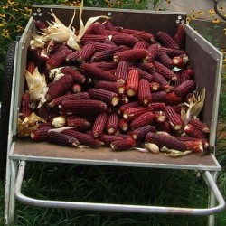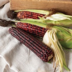 Een zeer oude en sierlijke, oorspronkelijke maïs uit Zuid-Amerika. Oorspronkelijk wit, maar door kruisingen in de 19e eeuw dieprood geteeld. Deze maïs is bijzonder groot, wordt nog steeds gebruikt om mee te koken, meel van te stampen en in zacht stadium zijn de kolven ook als (iets) zoete maïs te eten. De plant groeit krachtig en heeft smal blad en groenrode stengels: zet gerust een rijtje voor de sier neer!