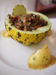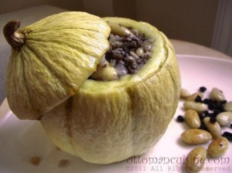 Een traditionele, Turkse variëteit met ovaalronde vorm, okergele schil met donkergroene vlekken en ruw gerimpelde oppervlakte. Het zoete vruchtvlees is witachtig tot lichtoranje van kleur. De vrucht is ook in iets onrijp stadium een lekkernij en wordt in de Turkse keuken gevuld met bijvoorbeeld vlees, uitjes, amandelen, pijnboompitten, peper, zout en peterselie: Kavun Dolmasi... ziehier een gerecht dat vanaf rond 1300 al bekend was. De vruchten wegen ongeveer 4-5 kg, door de dikke schil is vervoer geen probleem. We hebben dit ras gekozen vanwege de tamelijk goede bestendigheid tegen kou. Toch kan dit ras bij ons beter in de kas geteeld worden.