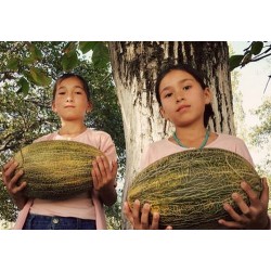 De botanische ontdekkingsreiziger Joe Simcox vertelt hoe hij deze geweldige meloen vond: "Niet ver van de beroemde Zuid-Kirgizische stad Osh ontdekte ik deze prachtige variëteit. Terwijl ik over een smalle weg reed omzoomd door gigantische platanen, ving ik een glimp op van een omheinde veranda die vol stond met meloenen. Ik vroeg mijn chauffeur om even om te keren zodat we het konden navragen. Toen ik op de poort klopte, antwoordde een kleine jongen. Mijn vertaler-chauffeur, vroeg naar zijn ouders, de kleine jongen rende weg en zijn moeder kwam. Ietwat wantrouwig gluurde ze door de kier in de deur. Mijn chauffeur legde uit dat ik meer wilde weten over de meloenen op de veranda. “O, die meloenen, die kweken we ieder jaar en verkopen ze later als de prijs hoger is.” Ik had het ijs gebroken, de dame riep haar man. Een minuut of twee gingen voorbij en er kwam een viertal de hoek om, deze keer werd de man vergezeld door de kleine jongen en twee tweelingzusjes. Toen hij mijn verhaal hoorde, was de man enthousiast: een Amerikaan was geïnteresseerd in zijn meloenvariëteit, dat fascineerde hem. Meteen sneed hij een meloen open, “Neem dit maar” zei hij terwijl hij het zojuist afgesneden plakje van het mes liet glijden. Het was een spectaculaire knapperige, sappige zoete meloen, “Deze kun je maanden bewaren.” zei hij tegen mijn chauffeur: ze worden zoeter en zoeter. Ik vertelde hem dat ik er meerdere zou kopen, maar eerst had ik wat foto's nodig. De tweeling wilden wel poseren en ik zette ze snel op de foto, elk met een meloen in de handen. Tegen de achtergrond van de Plataanbomen kon mijn beeld van de “Kirkman”-meloen niet authentieker zijn. Toen ik naar zaden vroeg, kreeg ik te horen dat hij een paar kg had die hij zou verkopen. Uit verder gesprek bleek dat hij werkelijk geloofde dat het zaadje pas het beste zou groeien en de zoetste meloenen zou voortbrengen nadat het drie jaar had “gerijpt”. We hebben hem nooit gevraagd of vier jaar nog beter zou zijn...! Vers meloenzaad kan je overigens makkelijk tien jaar bewaren. ” ZaaimethodeZaaien: bij het bezit van een verwarmde kas, vanaf eind januari en uitplanten begin maart. Voor de koude kas: zaaien vanaf eind maart, uitplanten begin mei. Plantafstand 150x50 cm. De planten mogen kruipen of langs touwtjes klimmen. Leveringsmaandenhet gehele jaar