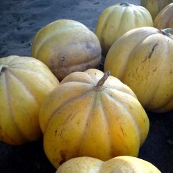 Wintermeloen (Inodorus groep) Na de oogst rijpende meloen, die lang bewaard kan worden. De vorm is rond tot (lang)ovaal, de schil is vrij glad, soms iets geplooid en/of geribd. De schilkleur varieert per ras van wit, geel tot zwartgeel gestreept. Het vruchtvlees is stevig en zoet in de kleuren wit, geel of oranje. ZELDZAAM! Deze meloen komt uit de omgeving van Zapotillo, in Ecuador, een gebied waar de omstandigheden heet en droog zijn en waar deze prachtige witvlezige meloen floreert. De vruchten zijn groot met een gladde gele schil en diepe ribben. Meloenen kunnen per stuk wel 5 kg wegen. Het is een traditioneel en steeds zeldzamer landras dat waarschijnlijk met uitsterven wordt bedreigd. In de kas is deze meloen dus zeer goed te kweken, ze kunnen goed tegen zeer warm en niet al te veel water... Snijd de vruchten als ze van kleur veranderen en geurig worden. Deze zeer smakelijke meloenen kunnen vers en in salades worden gegeten, of kunnen worden geperst voor een gezonde sap!