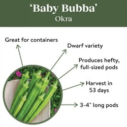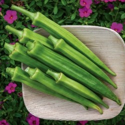 Okra is een veelzijdige en sierlijke, geel- of witbloeiende zomergroente met veel eetbare delen! Het belangrijkste en bekendste deel zijn de peulvormige vruchten. Deze zijn zeer jong geoogst het lekkerst en worden gebakken, gekookt (maakt sauzen en soepen dikker) of ingelegd in zuur. De heerlijk zachte textuur is zeer geliefd in de Mediterrane en Aziatische keuken. De zaden kunnen worden vermalen of gekookt en verwerkt in brood of Tofu en Tempeh. Geroosterd zaad is een van de beste koffievervangers! Het blad, de bloemknoppen en bloemen zijn eetbaar in roerbakschotels of soepen. Het blad kan ook goed worden gedroogd voor later gebruik in de soep. Tenslotte zijn de wortels ook eetbaar voor het bereiden van bijvoorbeeld een groentebouillon, na het trekken de wortels weer verwijderen, ze zijn taai. Heel populair in Midden-Amerika en Zuid-Amerika (Surinaamse keuken bijvoorbeeld) Een ideale Okra voor de teelt in potten, de planten worden ongeveer 75-100 cm hoog! De malse, smakelijke vruchten worden 7-9 cm lang, je kan een grote en vroege oogst verwachten. Bij milde, minder warme zomers is het helpend om de plant in de kas te kweken of de plant met koudere dagen even binnen zetten. Okra is een koukleum en kan flinke hitte goed aan.